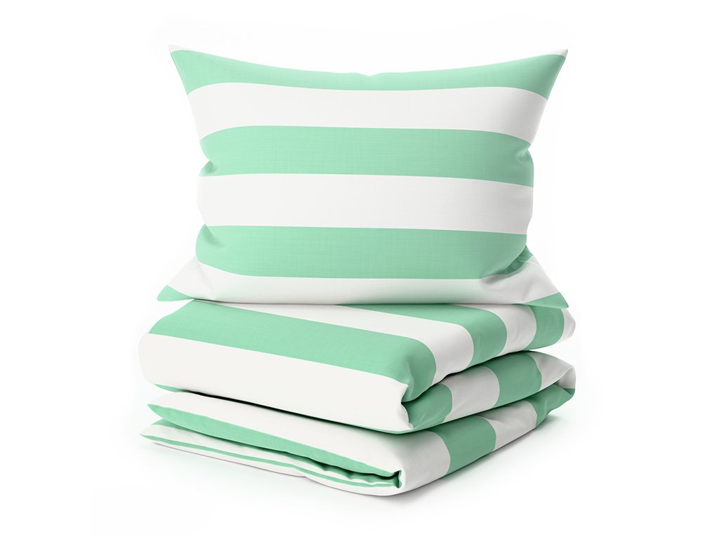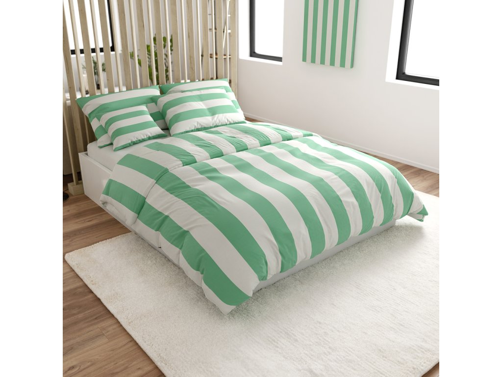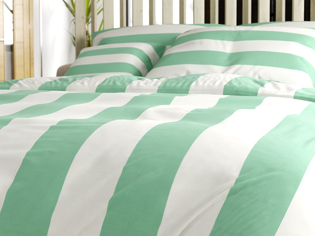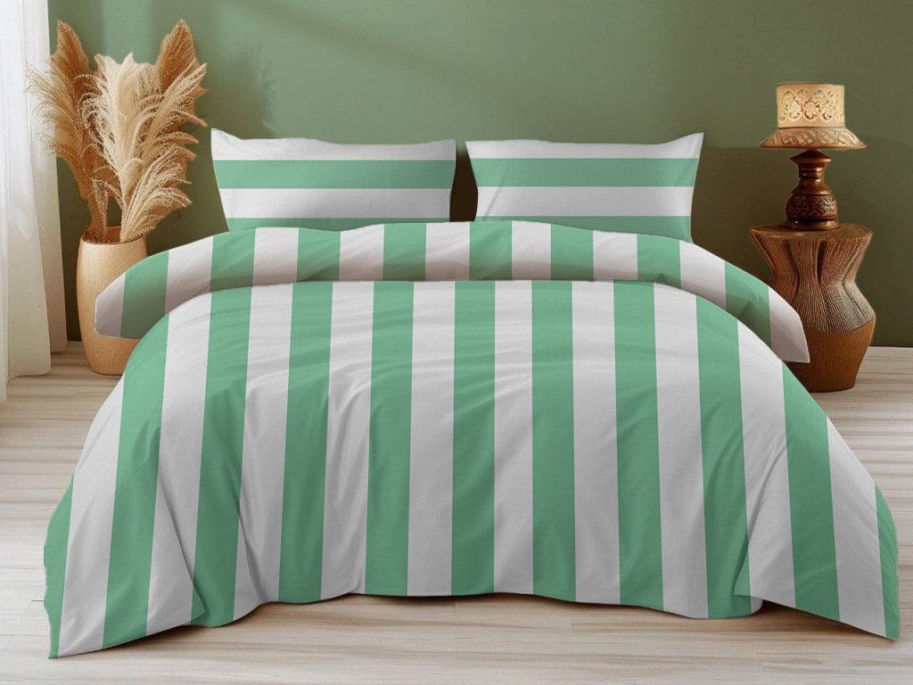 Pamučna posteljina STRIPES bijelo-zelena