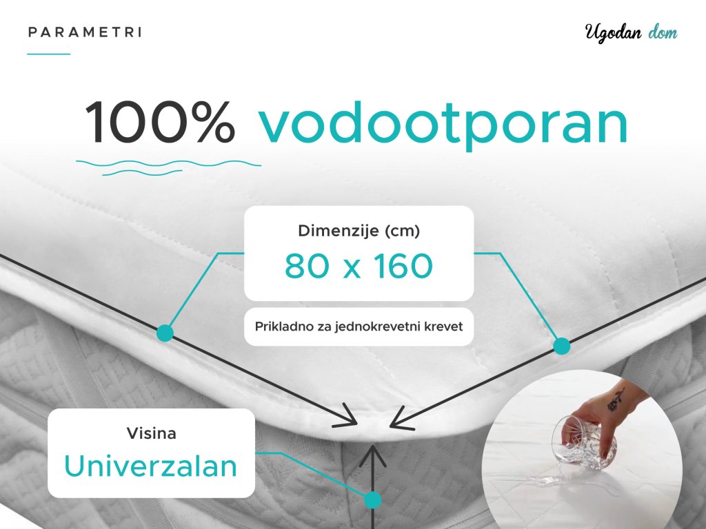 Vodootporan štitnik madraca PROŠIVEN 80 x 160 cm