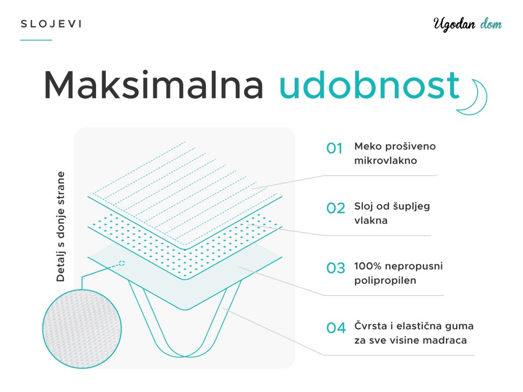 Zaštita madraca je važnija no što mislite. Svaki čovjek, dijete ili odrastao, prirodno se znoji. Tokom noci lučimo do litre znoja, koji se upije u plahtu i srž madraca. Štitnik madraca skupa uvjecava higijenu ležaja. Dapače, štiti od mehaničkih oštecenja, nečistoce, grinja, znoja i mokrace. Radi se o perfektnom pomocniku kod dječijih krevetica ili prvog kreveta. Svoje mjesto, takodjer ima kod odraslih kao uobičajena zaštita madraca, kod seniora ili dugotrajno bolesnih, koji su vezani za ležaj. Vodonepropusna štitnik stvara zaštitu, a za tekucine nepropusni sloj. Ne trebate se bojati osjecaja da spavate na plastici, gornji sloj štitnika je proizveden od mikrovlakna, koje se prilagodjava koži i prijatno je na dodir.