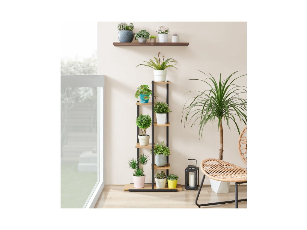 Stalak za cvijeće LOREDO u dekoru hrasta, crni