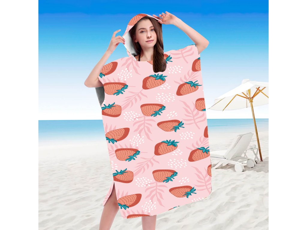 Pončo za plažu STRAWBERRIES ružičaste 80x145 cm