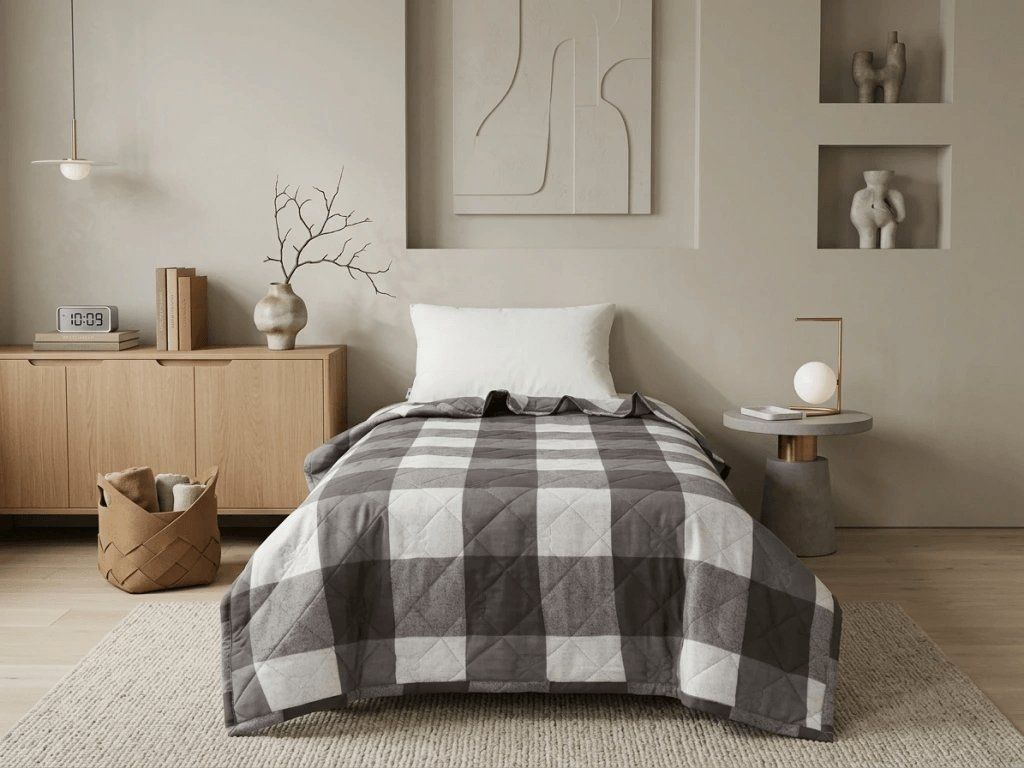 Ljetni prošiveni poplun CUBE 140x200 cm, sivo-bijela