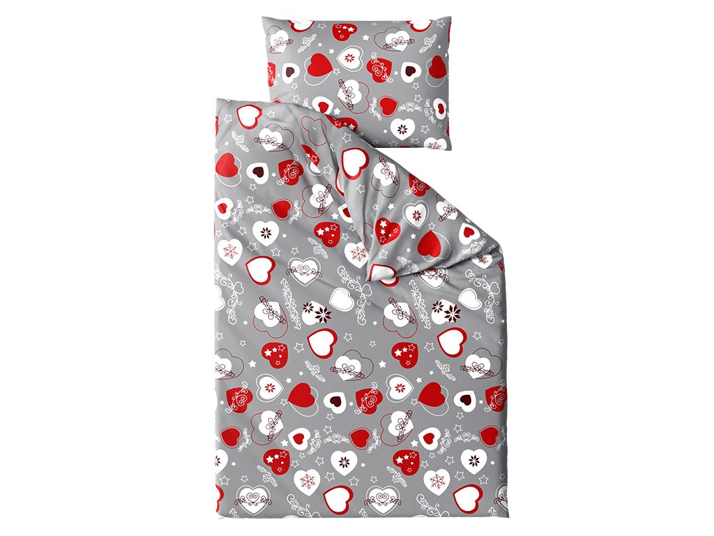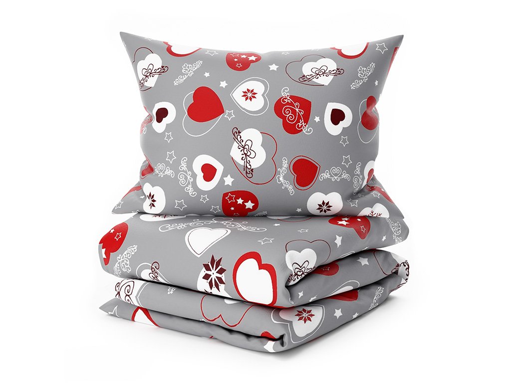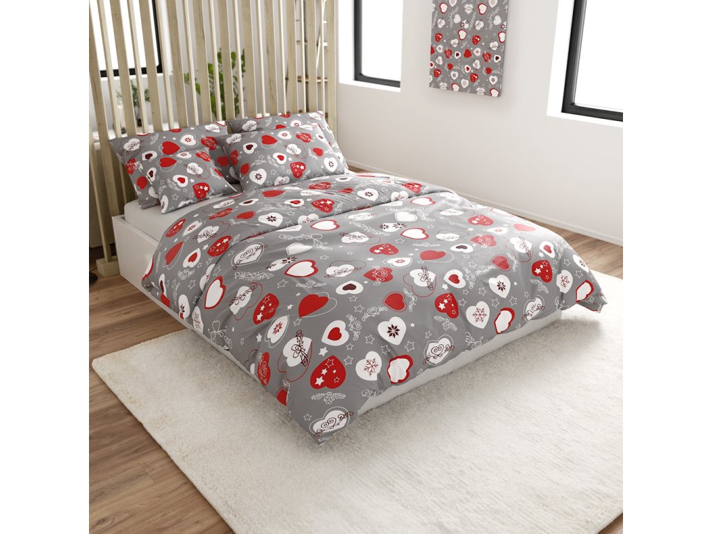 Posteljina mikropliš CHRISTMAS HEART siva