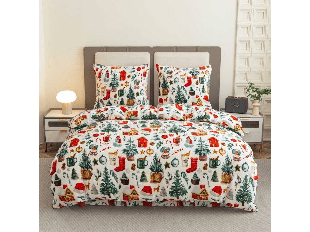 Posteljina mikropliš FESTIVE MAGIC bijela