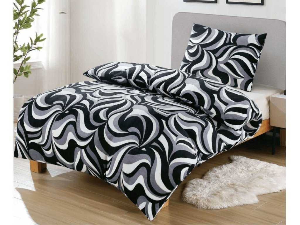 Posteljina mikropliš ILLUSIONS crno-sivo