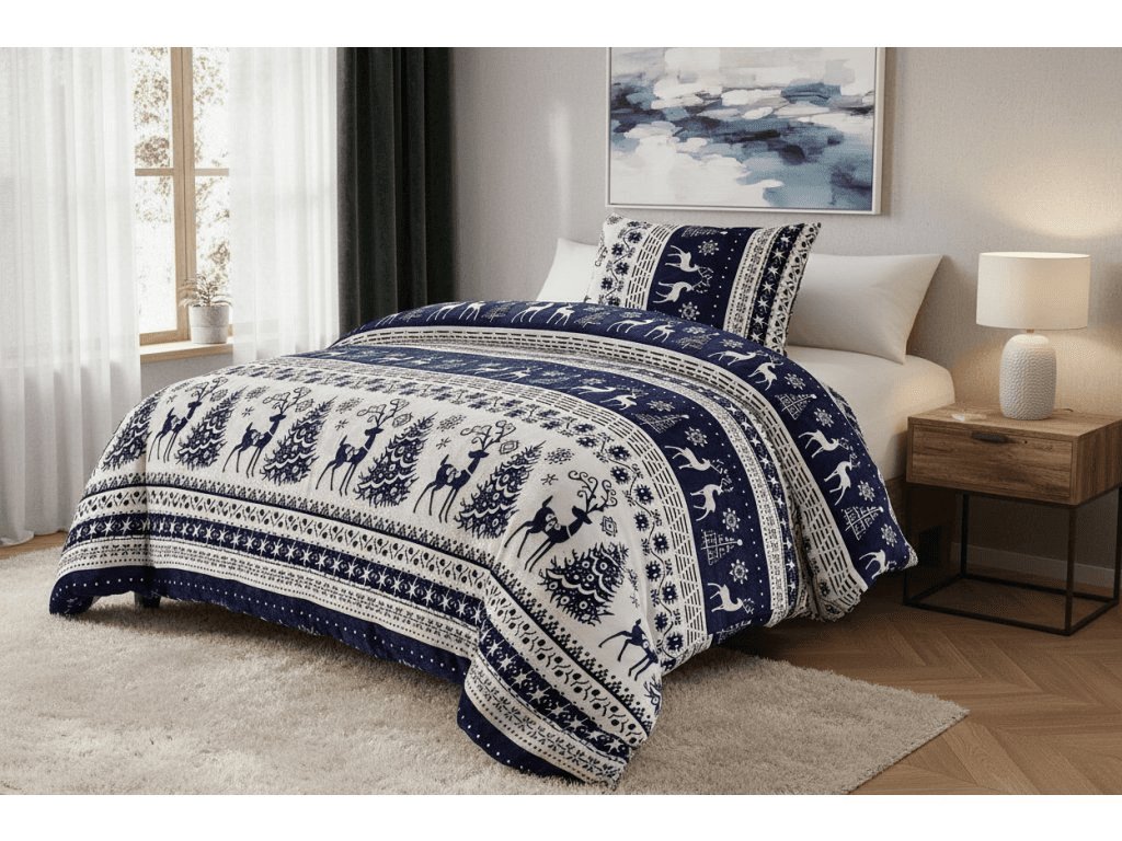 Posteljina mikropliš WINTER DEER VELVET plava