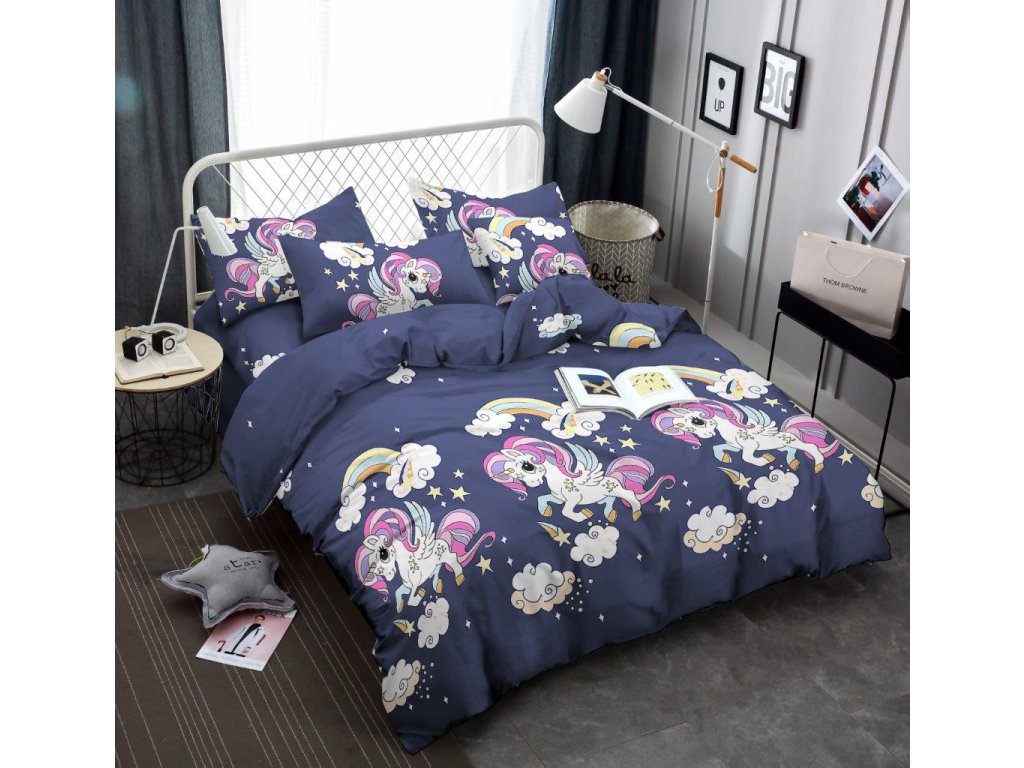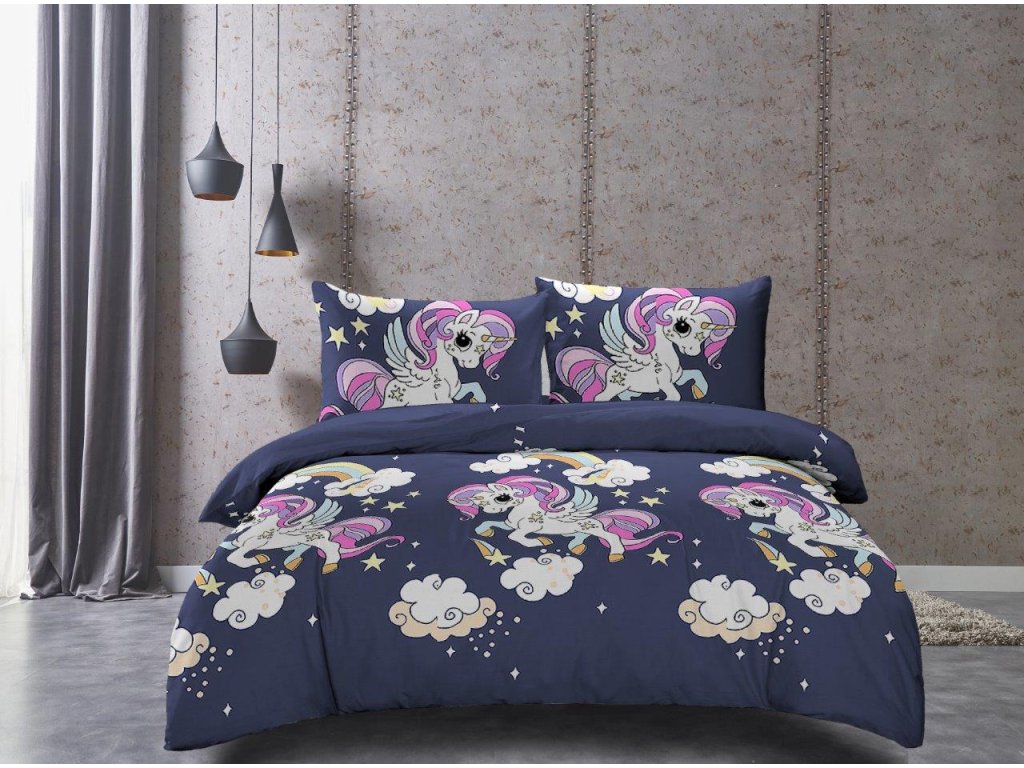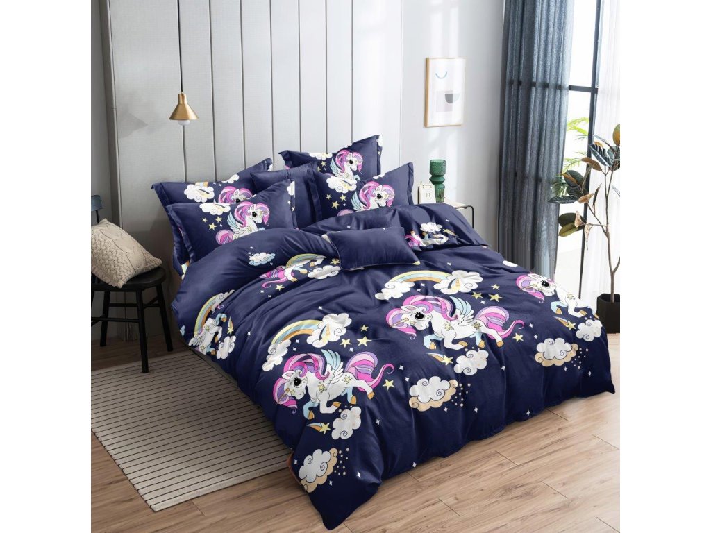 Dječija posteljina od mikrovlakana UNICORN plava