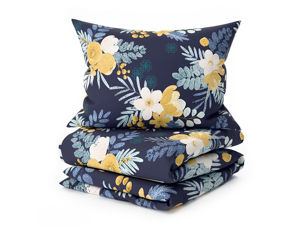 Posteljina od mikrovlakana FLOWERISH tamno plava