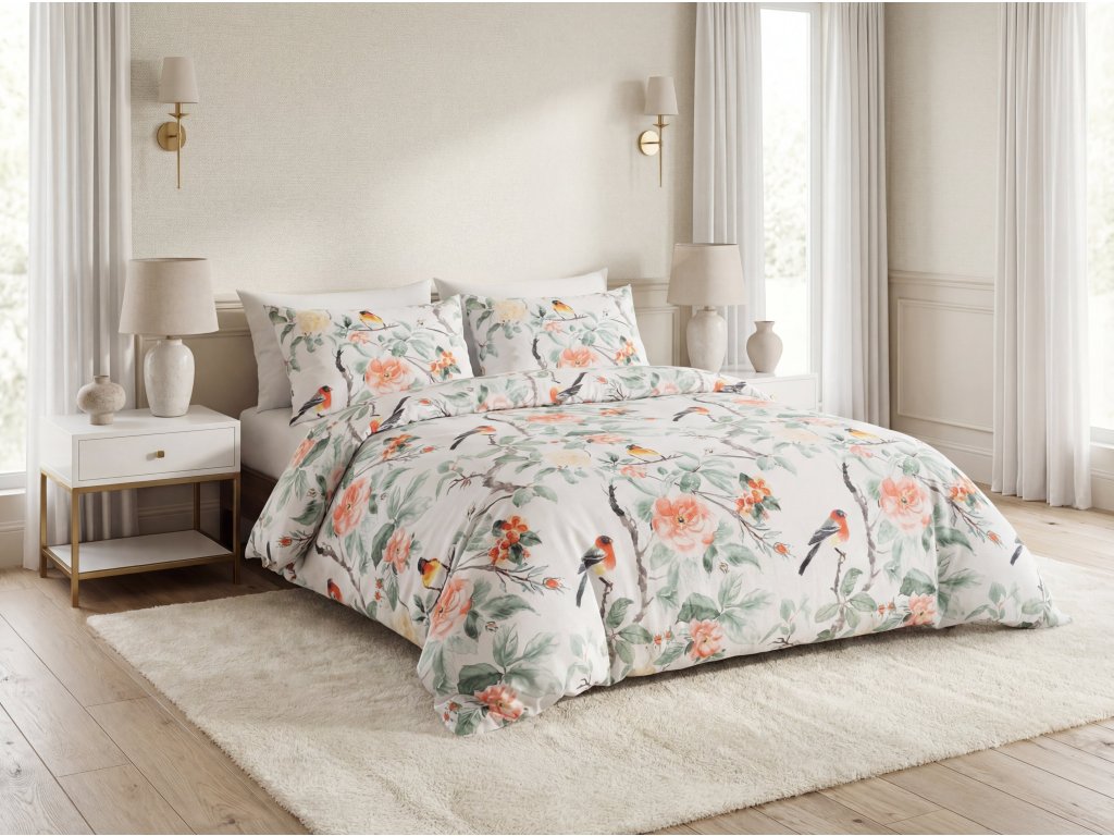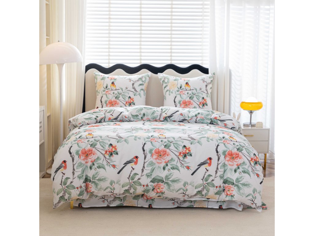 Posteljina od mikrovlakana ORANGE FLOWERS bijela