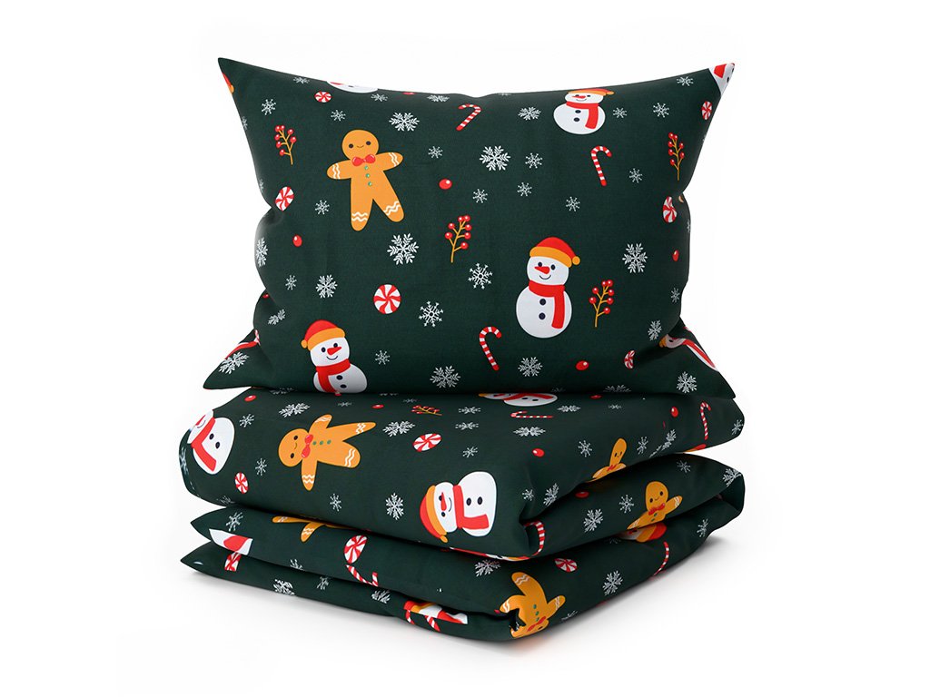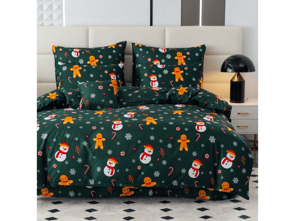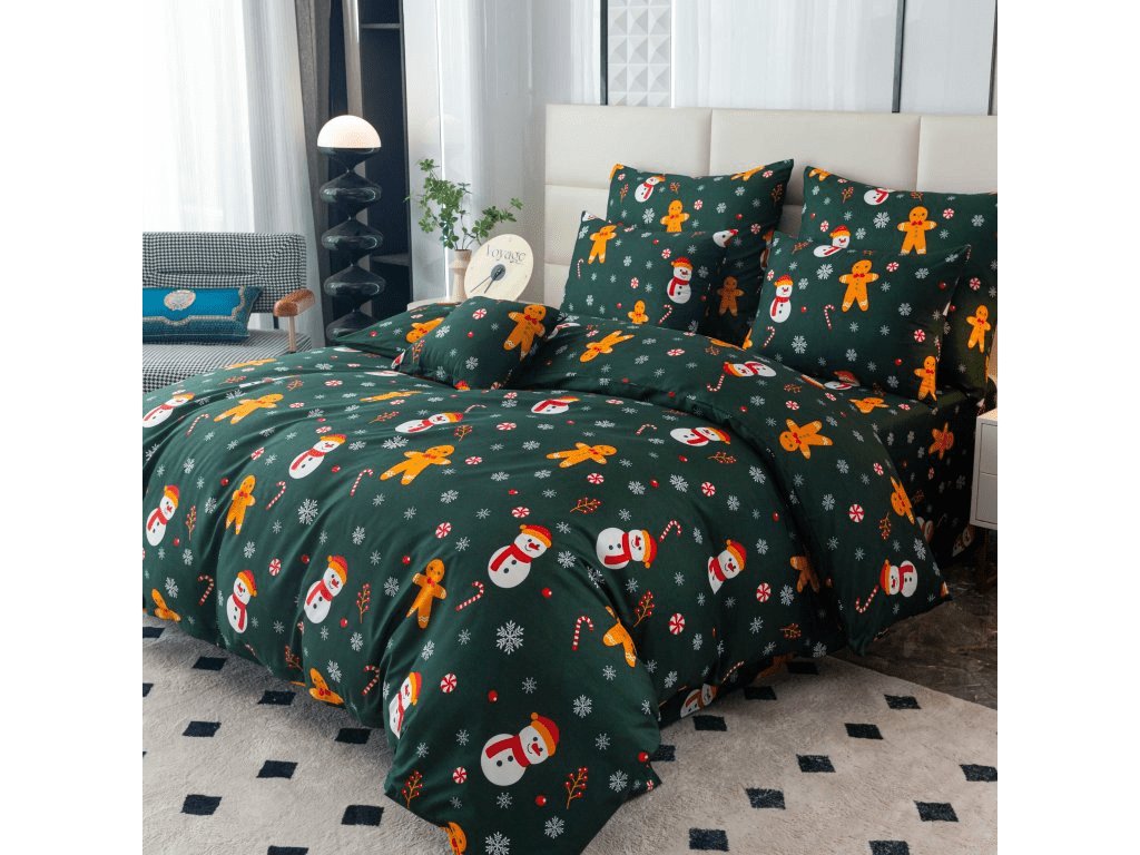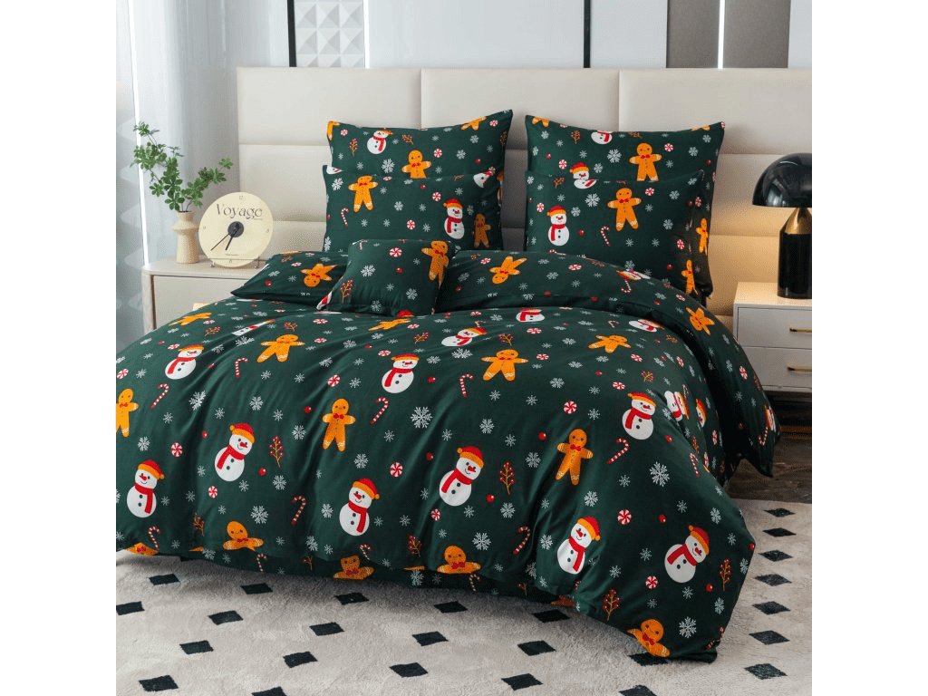 Posteljina od mikrovlakana SNOWMAN AND GINGERBREAD zeleni
