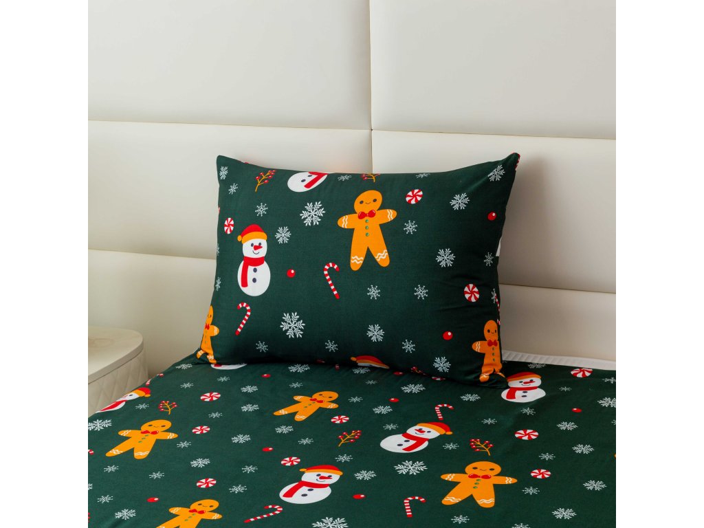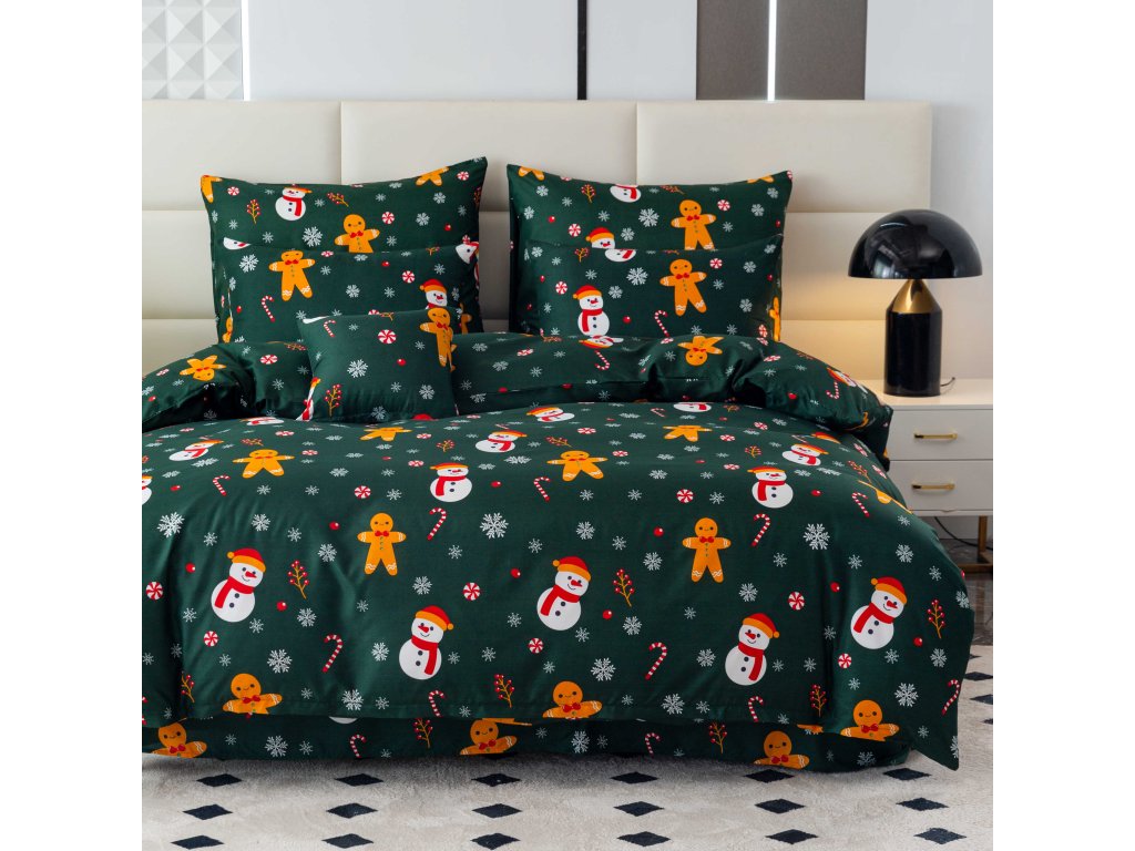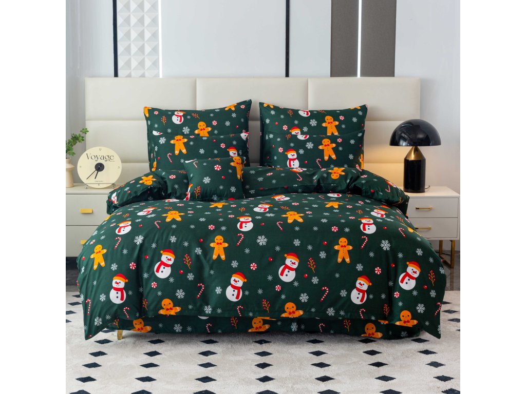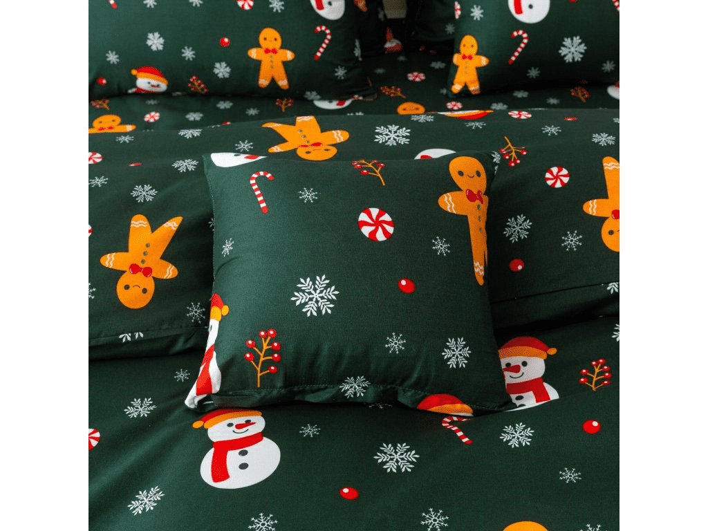 Posteljina od mikrovlakana SNOWMAN AND GINGERBREAD zeleni