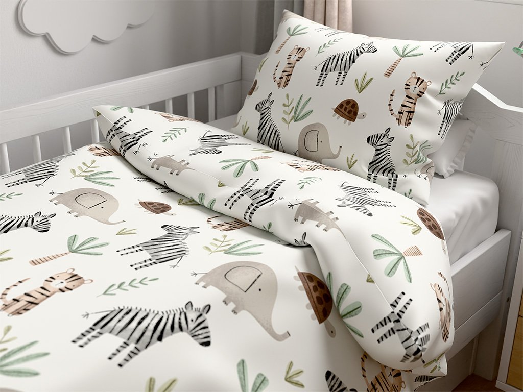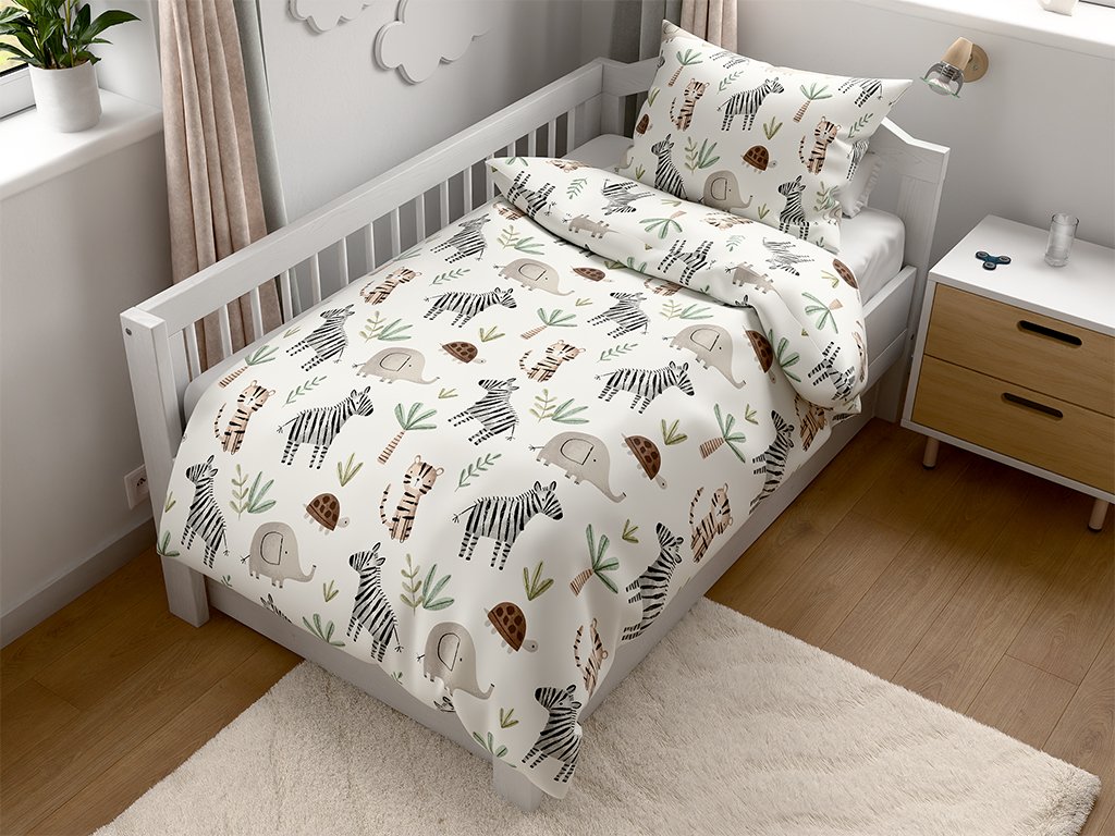 Pamučna posteljina za dječji krevetić Renforcé JUNGARI krem boje