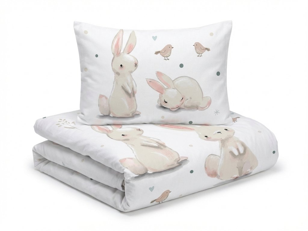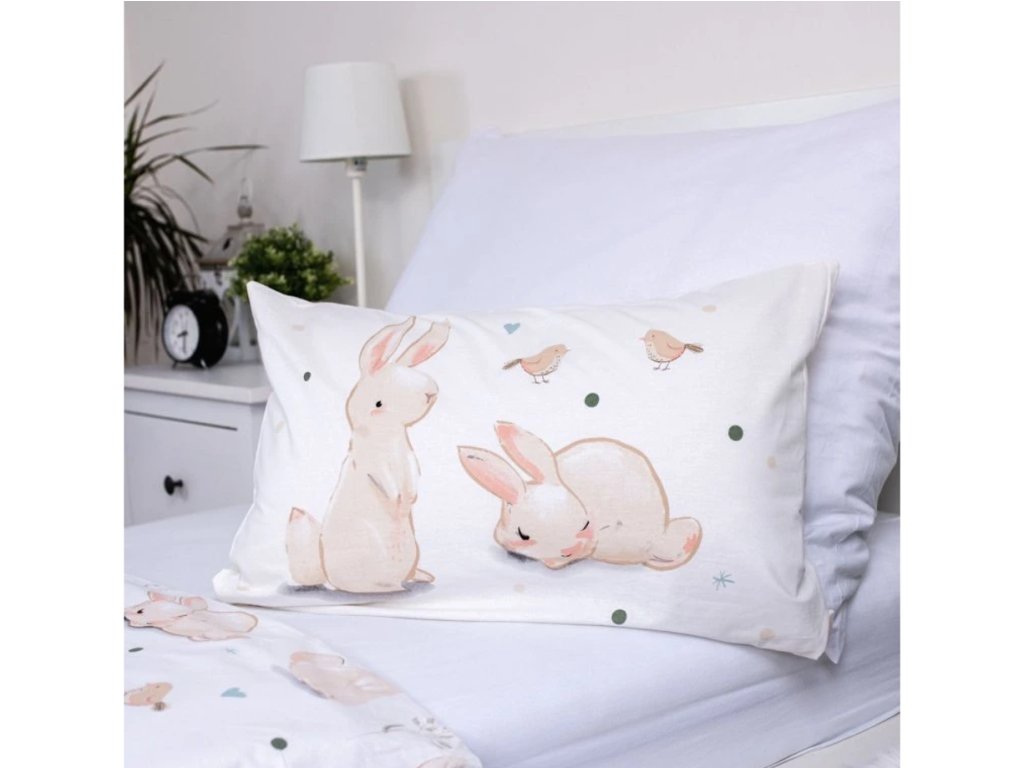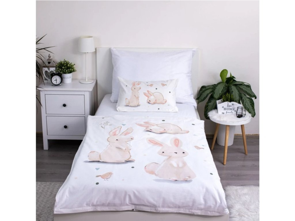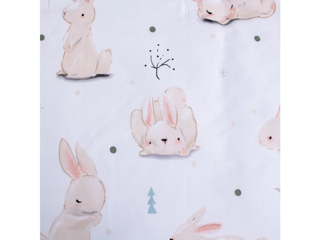 Pamučna posteljina za krevetić BUNNIES bijela