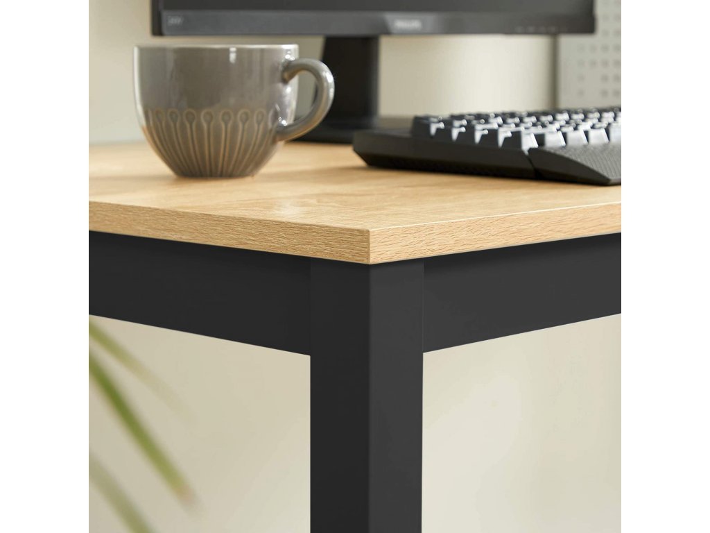 Blagovaonski set 1 + 4, stol TESSA 120x60 cm crna/dekor hrast + crna plastična stolica ESSEN