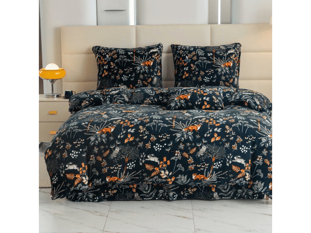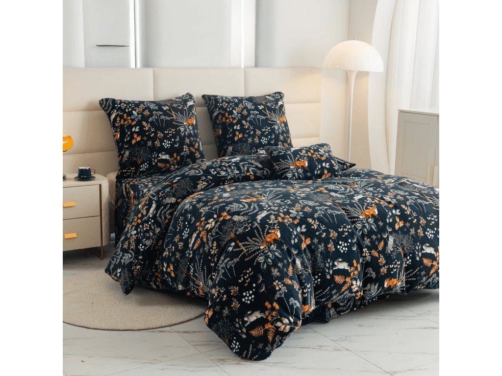 Sada 2 kom posteljine mikropliš LISICA I ZEC tamno zeleno + plahta od mikroplyša SOFT 180x200 cm bijela, bračni krevet