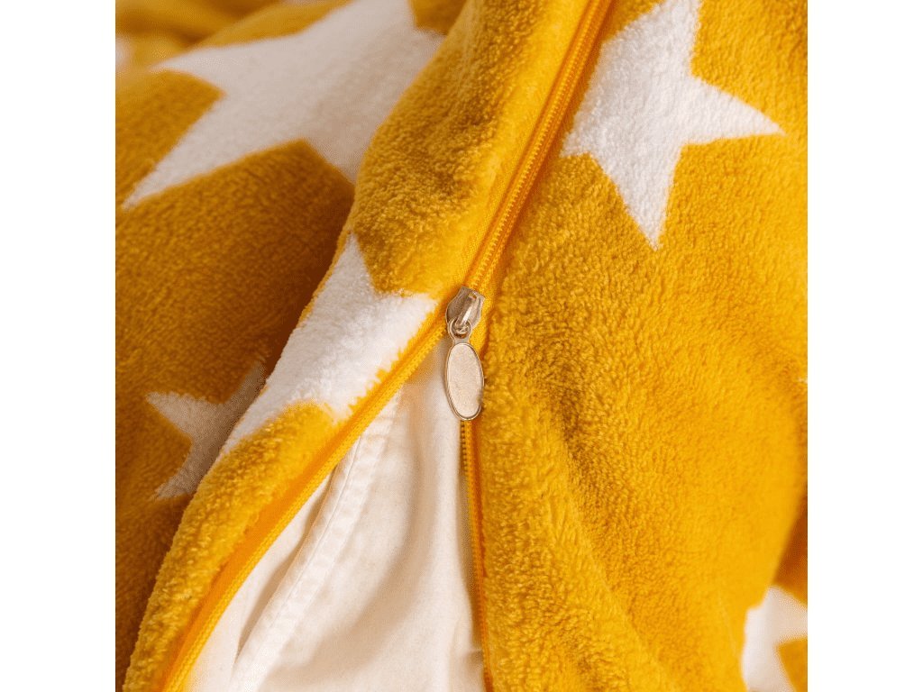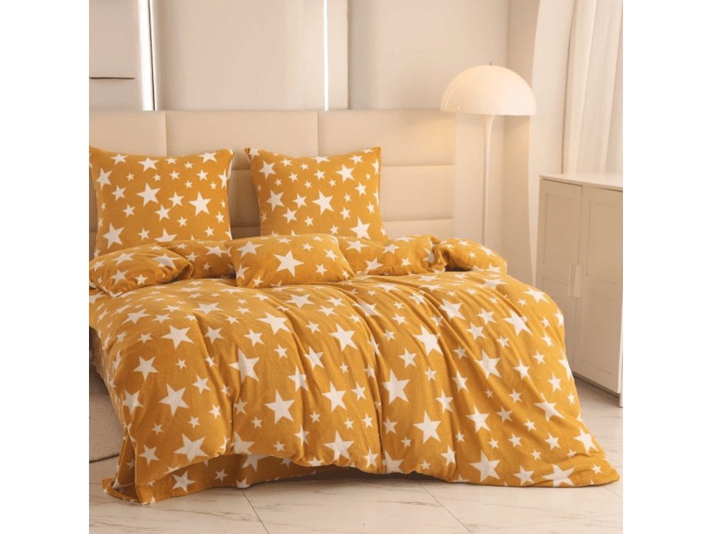 Set posteljine od mikropliša HVJEZDE žuto-narančaste + plahta od mikropliša SOFT 180x200 cm bijela, bračni krevet