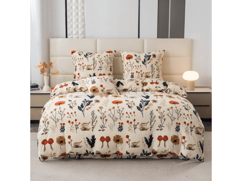 Set posteljine od mikropliša PAPAVA krem + plahta od mikropliša SOFT 90x200 cm bijela, za jedan krevet