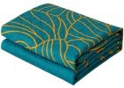 Tyrkysový přehoz na postel se vzorem LEAVES (Dimenzije 170 x 210 cm)