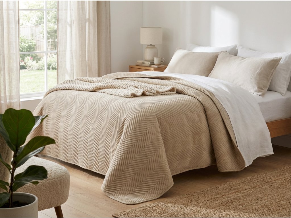 Bež prekrivač za krevet od baršuna ARROW VELVET