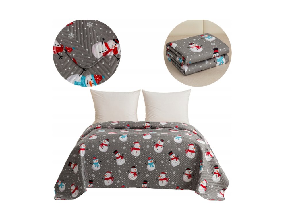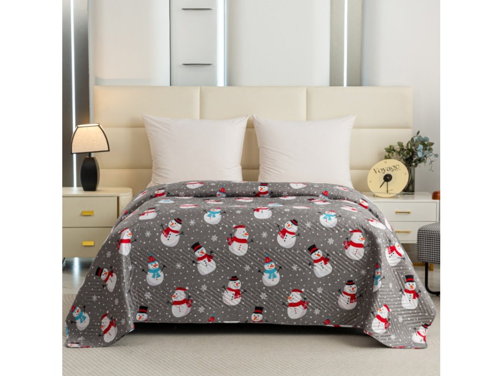 Prekrivač za krevet HAPPY SNOWMAN, sivi