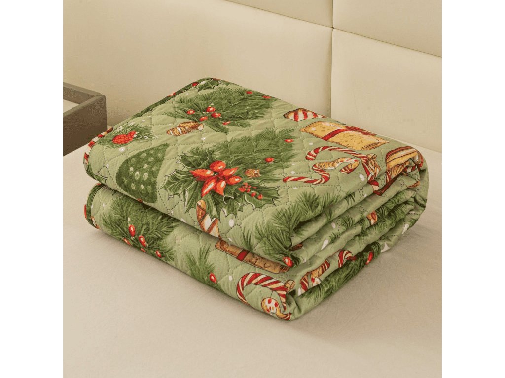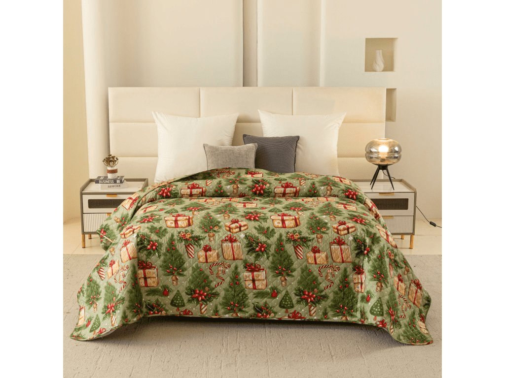 Prekrivač za krevet s uzorkom CHRISTMAS PRESENTS, zeleni