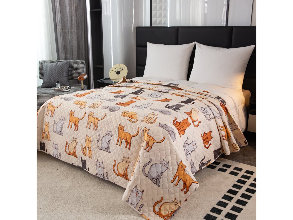 Prekrivač za krevet s uzorkom COLORED CATS krem boje
