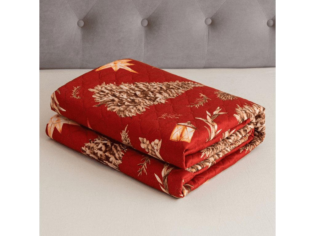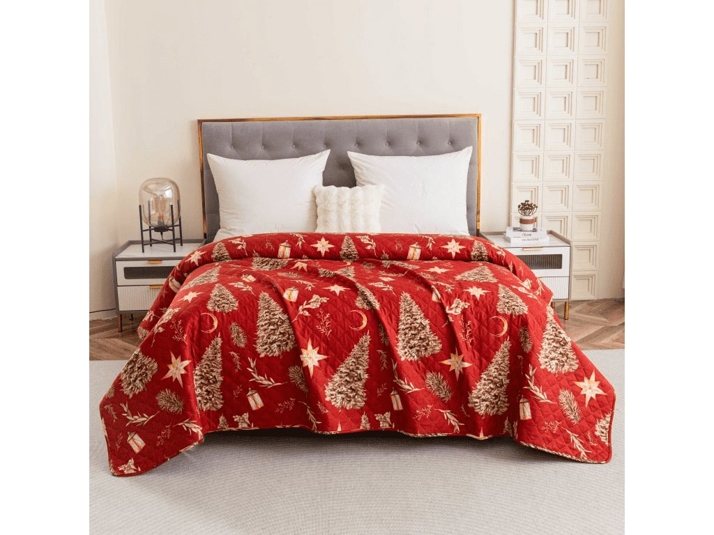 Prekrivač za krevet s uzorkom GOLD CHRISTMAS, crveni