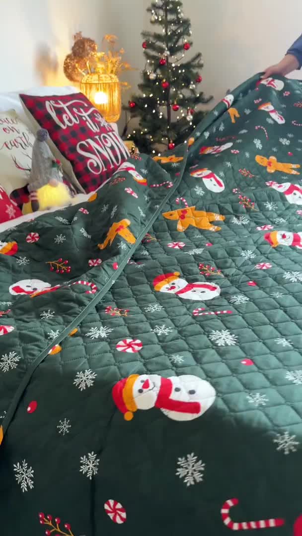 Prekrivač za krevet SNOWMAN AND GINGERBREAD, zeleni