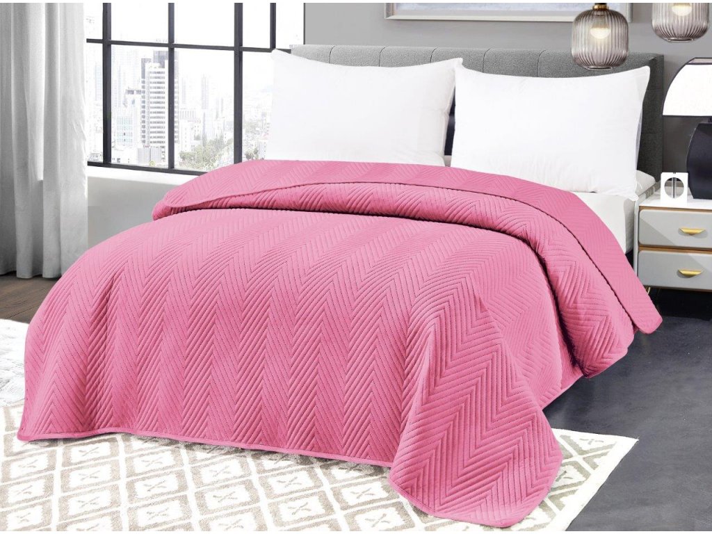 Svijetlo ružičasti baršunasti prekrivač za krevet s uzorkom ARROW VELVET