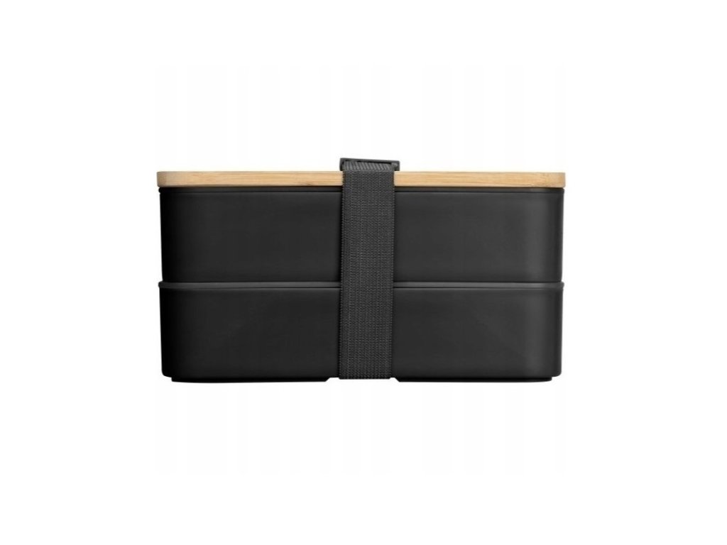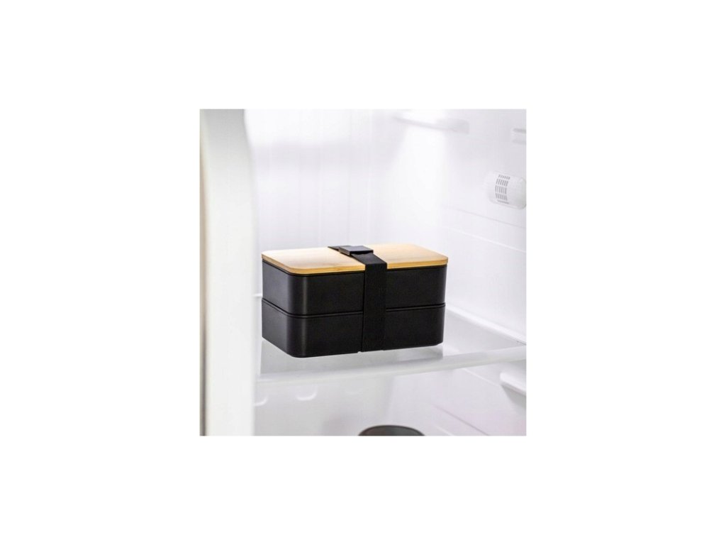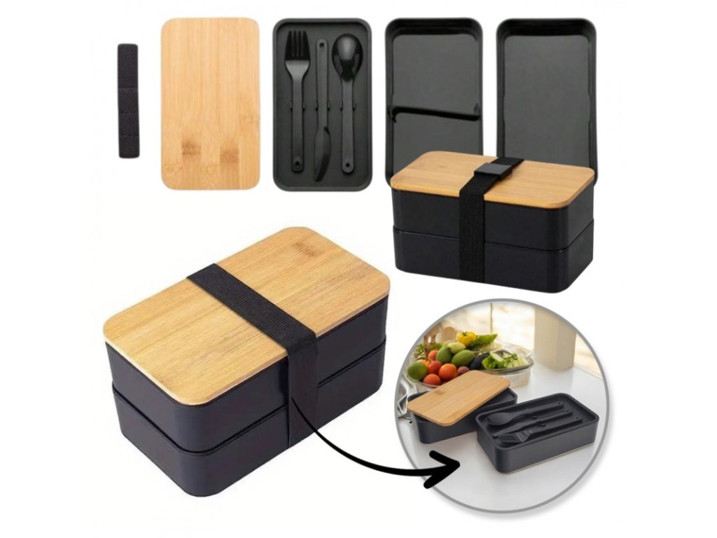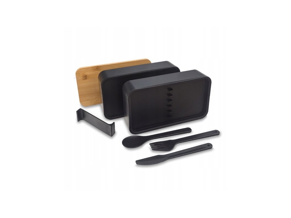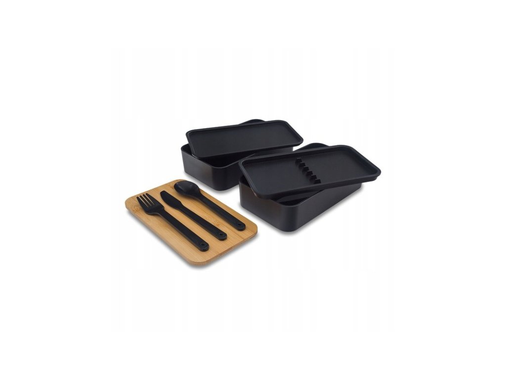 Kutija za užinu DUO LUNCH s priborom, crna/bambus