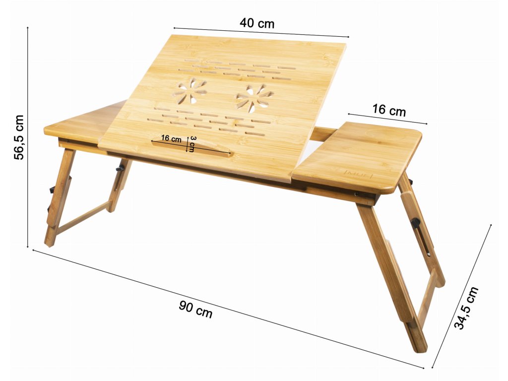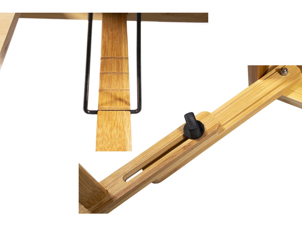 Bambusni stolić za prijenosno računalo GION XL je praktičan i svestran pomagač u svakoj kući. Izrađen od kvalitetnog bambusovog drva, privlači ne samo svojim prirodnim izgledom, već i promišljenom specifikacijom. Nudi tri odvojene radne površine – za prijenosno računalo ili tablet, miš i napitak, te dodatni dio za odlaganje pribora. Zahvaljujući ventilacijskim otvorima na srednjoj ploči osigurava optimalno hlađenje uređaja i štiti ga od pregrijavanja. Ima podesiv nagib u četiri položaja i visinski podesive noge, zahvaljujući kojima se stol lako prilagođava djeci i odraslima. Praktična je i odvojiva prepreka koja sprječava klizanje prijenosnog računala ili knjige pri nagibu ploče.