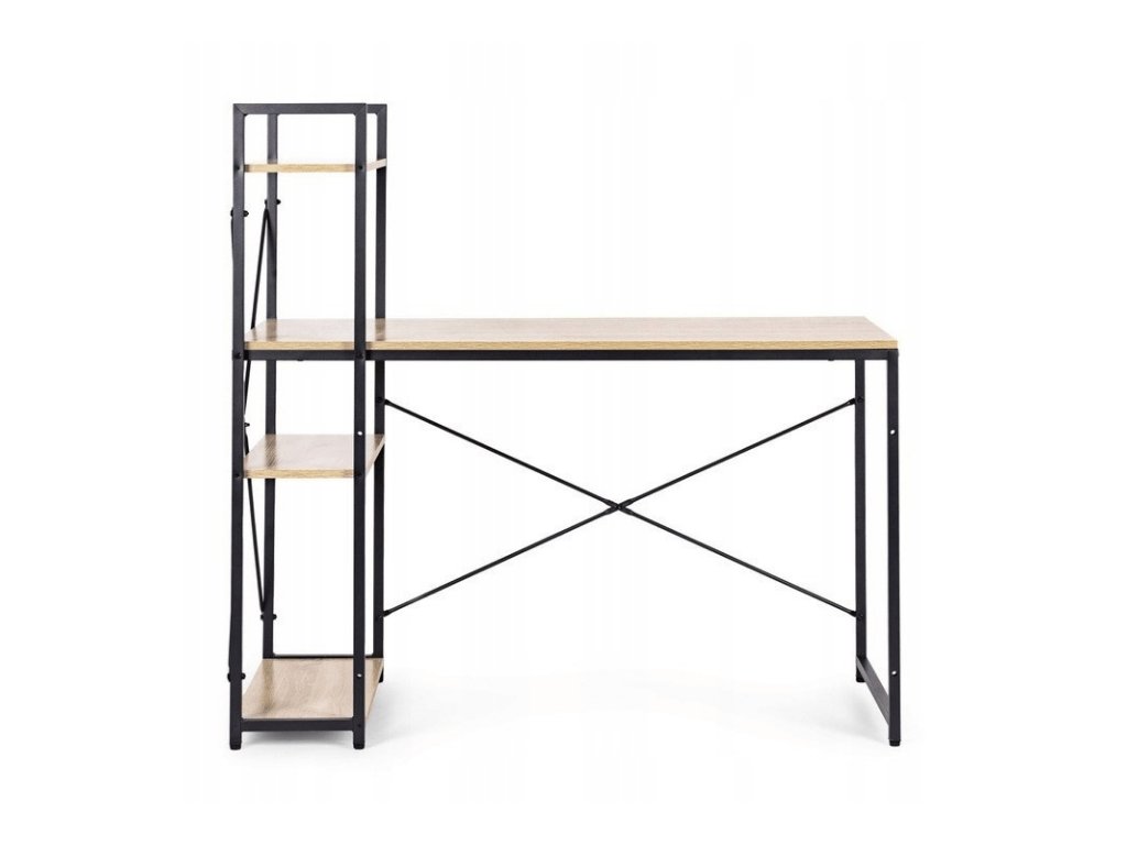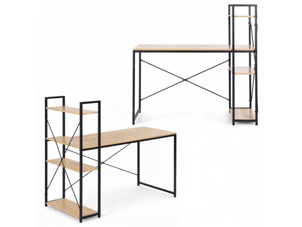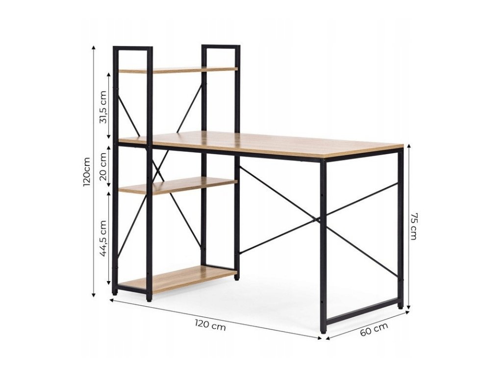 Radni stol s policom LOFTY 120x60 cm, crni / dekor hrasta