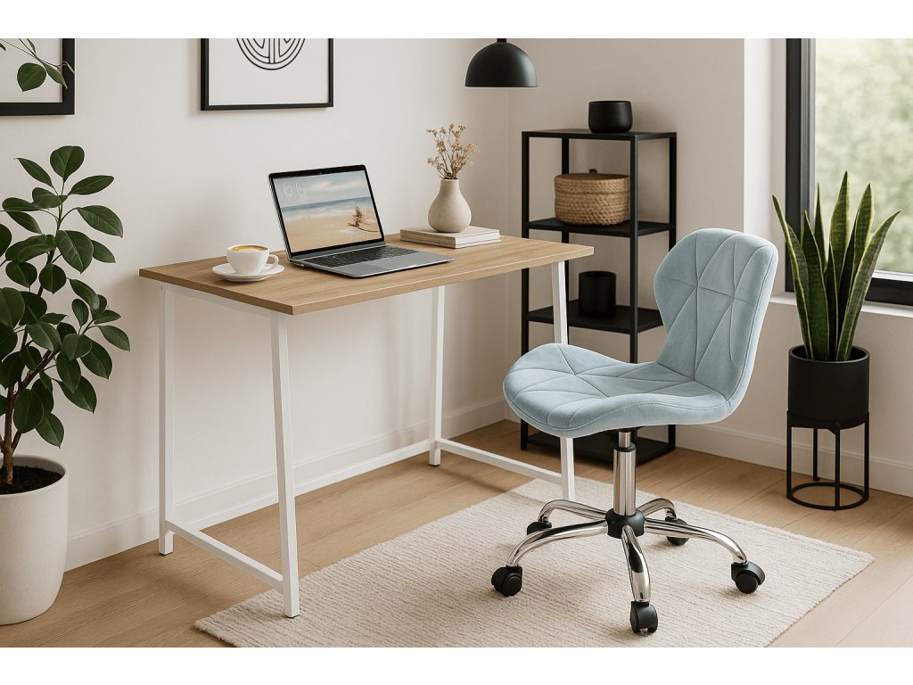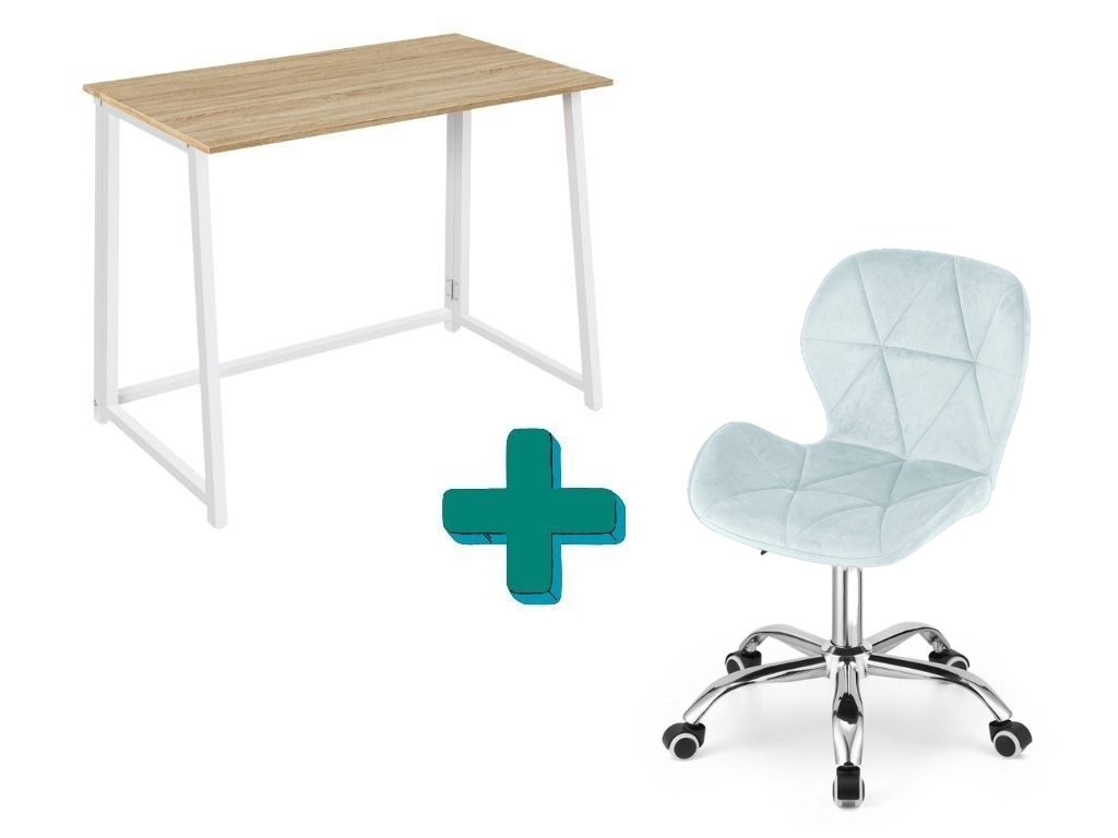 Set za ured – sklopivi radni stol ZARIMO 80×40 cm bijeli + uredska stolica AVOLA VELVET svijetloplava