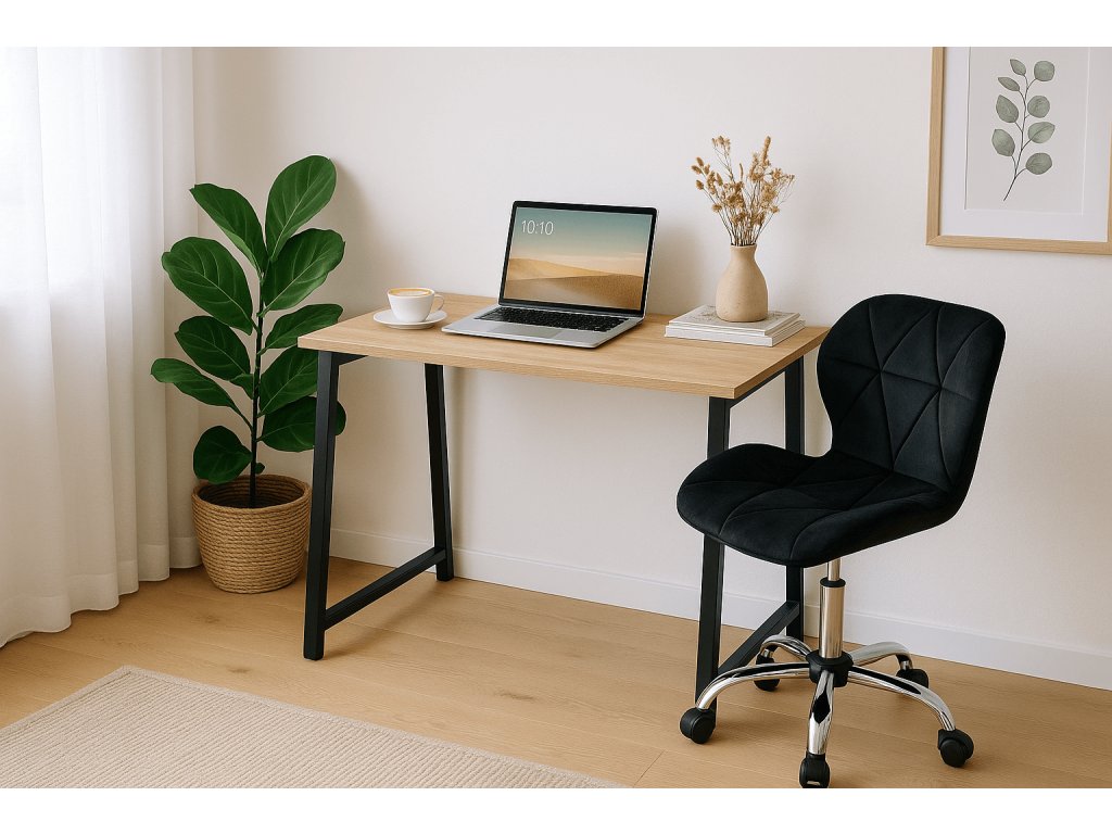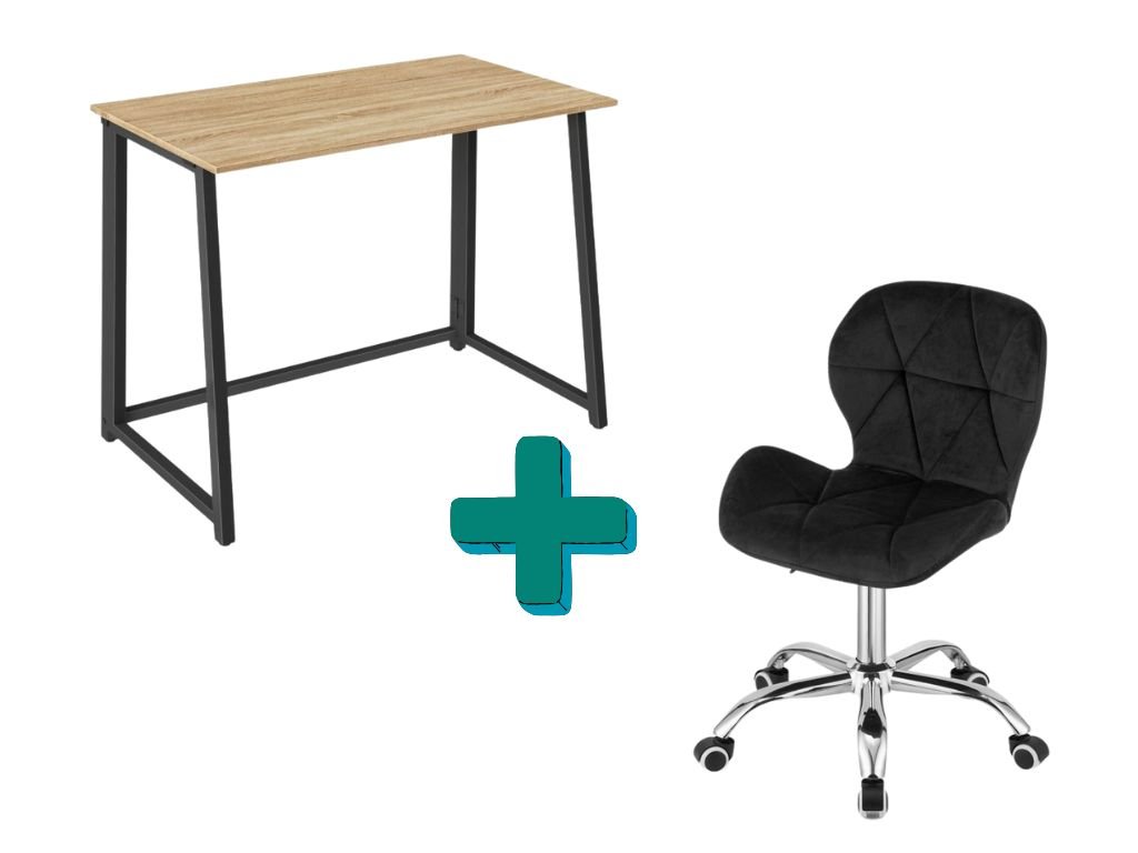 Set za ured – sklopivi radni stol ZARIMO 80×40 cm hrast sonoma + uredska stolica AVOLA VELVET crna