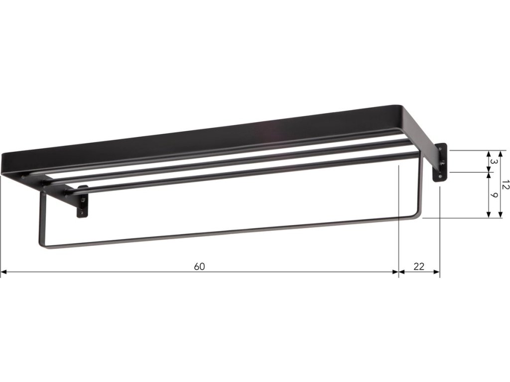 Zidna vješalica za ručnike HANDY 60x22 cm, crna