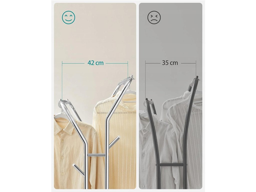Moderno i mobilno rješenje za organizaciju odjeće je ključ za preglednu i praktičnu predsoblje. Stalci s kotačićima nude jednostavnu manipulaciju i omogućuju lako premještanje prema potrebi. Čelična konstrukcija osigurava stabilnost i visoku nosivost, što omogućuje vješanje većeg broja odjeće i težih kaputa. Zahvaljujući dodatnim kukama i donjoj polici dobit ćete dovoljno prostora za dodatke ili obuću. Ovaj stalak je idealan izbor za one koji žele imati svoj prostor ne samo dobro organiziran, već i stilski i fleksibilan.