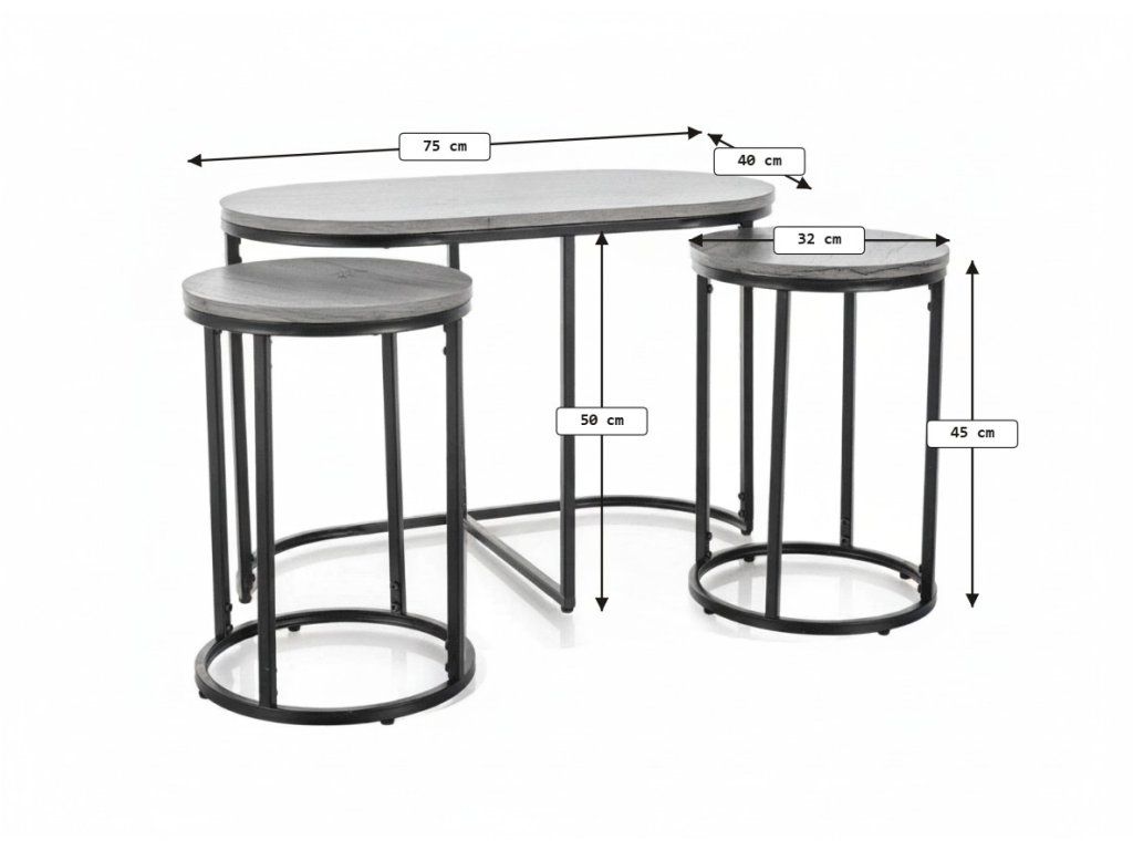 Ovaj set stolića donosi u interijer slobodu rasporeda i modernu estetiku. Zahvaljujući variabilnom rješenju, možete stoliće lako razdvojiti, umetnuti pod sebe ili koristiti svaki zasebno ovisno o trenutnoj potrebi. Poslužit će savršeno za opuštanje uz kavu, druženje s prijateljima te kao praktičan prostor za dekoracije. Kombinacija drva i metala prostor čini ugodnim s blagim industrijskim dojmom, zbog čega će postati prirodni dio vašeg svakodnevnog života.