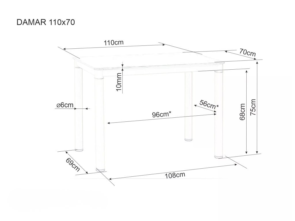 Crni blagovaonski stol DAMAR 100x70 cm, dekor bijelog mramora