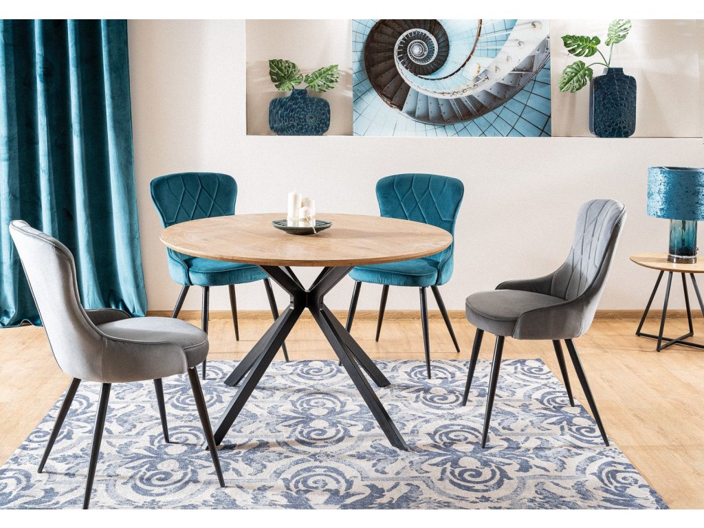 Preovlađujući tonovi hladne nordijske prirode djeluju ugodno. Neutralne boje dopunjene prirodnim materijalima i jednim izraženijim akcentom pokrenu energiju u interijeru. Nordijski minimalizam odlikuje se funkcionalnošću. Prostori su prozračni, svježi i čisti. Čistoću postižemo zahvaljujući multifunkcionalnom namještaju i dovoljno skladišnog prostora. Nije drugačije ni u skandinavskim blagovaonicama i kuhinjama. Prostrane površine ispunite stolom Aster s okruglom pločom u dekoru hrasta. Tapecirane stolice i dodaci od kože, pletiva ili stakla bit će ukusni elementi.