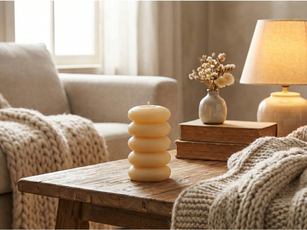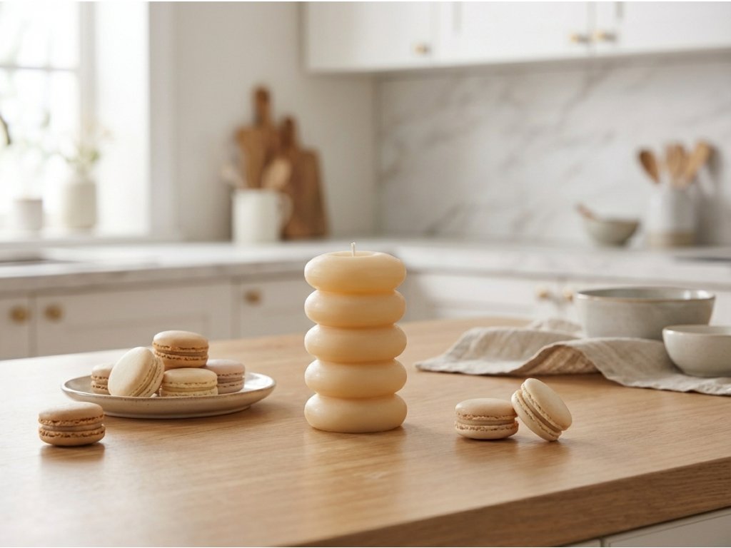Svijeća MACARON ističe se na polici, stolu, kao i u kombinaciji s drugim svijećama različitih oblika i boja. Odlično se uklapa u skandinavski ili boho stil, gdje se ističe u kontrastu s prirodnim materijalima. Svijetlo žuti ton lijepo se slaže s bijelom, bež ili zelenom bojom, a odgovara i proljetnom te uskršnjem uređenju, gdje će stvoriti svježu i optimističnu atmosferu.