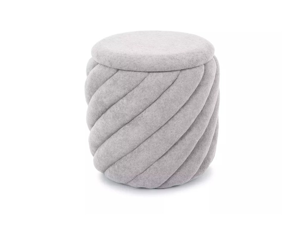 Ovaj elegantni taburet spaja moderni dizajn s praktičnošću. Zahvaljujući prostoru za pohranu, lako ćete spremiti deke, časopise ili druge sitnice i održati red u prostoriji. Blaga siva boja i spiralno prošivenje daju tabureti luksuzan izgled koji se savršeno uklapa u dnevni boravak, spavaću sobu ili predsoblje. Lako prenosiv i istovremeno stabilan, postat će nezamjenjivi pomoćnik za svakodnevnu udobnost.