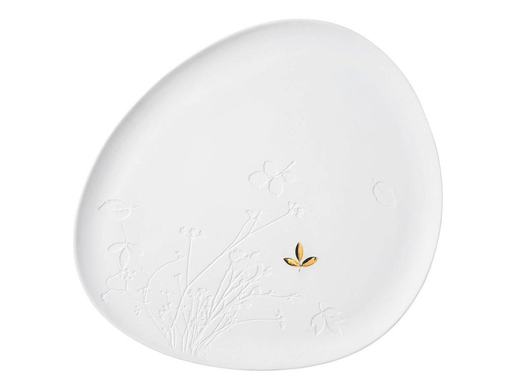Bijeli porculanski tanjur GOLD LEAF, veliki