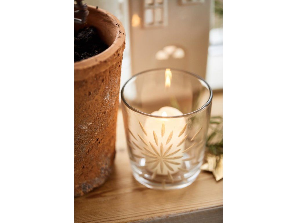 Stakleni svijećnjak s mesinganim dekorom BRASS