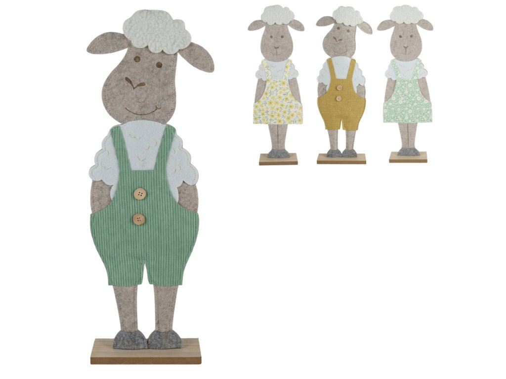 Ovi filcani janjci u veselim proljetnim hlačama unose razigranost i šarm uskršnje sezone u svaki dom. Zahvaljujući nježnom izradi i pastelnim bojama, odišu blagošću i elegancijom – savršeno izgledaju na komodi, polici ili kao dio svečanog stola. Idealni su dodatak za sve koji žele unijeti dašak radosti u svoj interijer i podsjetiti se na ljepotu proljeća u njegovom najšarmantnijem obliku.
