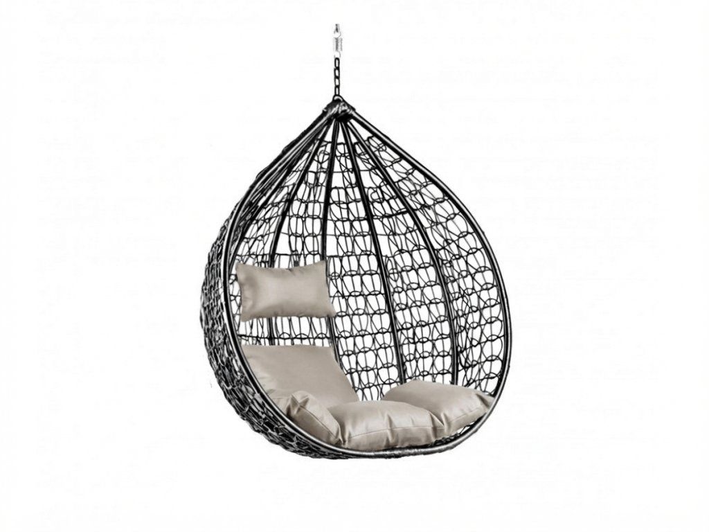 Crna viseća stolica KOKON bez stalka, svijetli jastuk