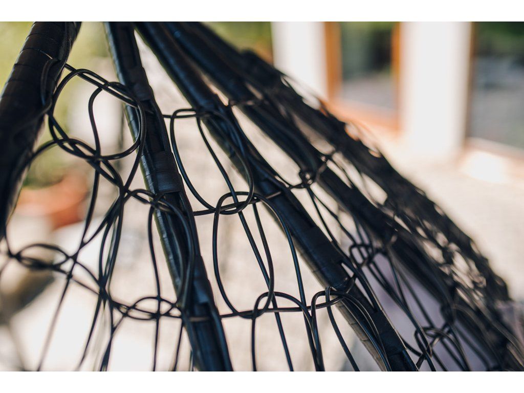 Crna viseća stolica KOKON pretvorit će svaki prostor u savršeno utočište udobnosti. Njegov oblik koji podsjeća na kap pruža ugodnu privatnost gdje se možete sakriti s knjigom ili jednostavno opustiti. Crna metalna konstrukcija izgleda suptilno, ali čvrsto - idealna kombinacija stila i funkcionalnosti. Polstrování u svijetlom tonu dodaje udobnost i ugodnu atmosferu.