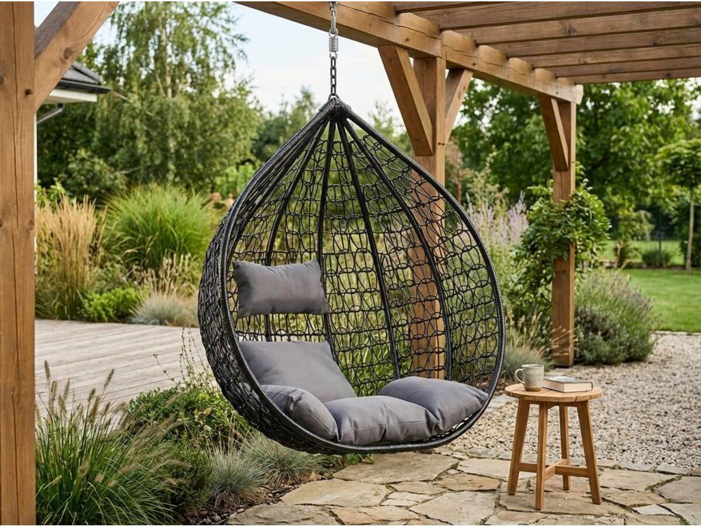 Uživajte u mirnim trenucima u vlastitom kutku udobnosti. Viseća stolica nije samo mjesto za sjedenje, već i način da usporite i napunite se novom energijom. Lagano ljuljanje pomaže opustiti tijelo i um, bilo da se opuštate vani u vrtu ili unutra uz čitanje omiljene knjige. Zahvaljujući izdržljivim materijalima i elegantnom dizajnu, postat će stilski dodatak svakom prostoru – i vaše novo omiljeno mjesto.