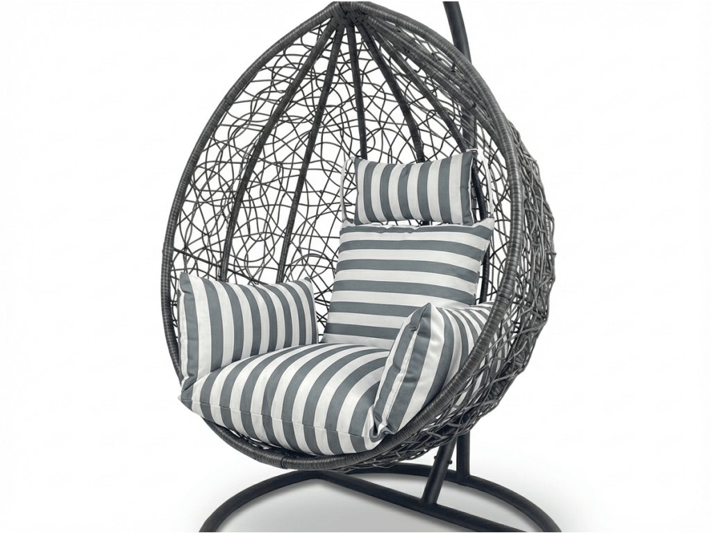 Jastuk za viseću stolicu KOKON, bijelo-sivi s prugama