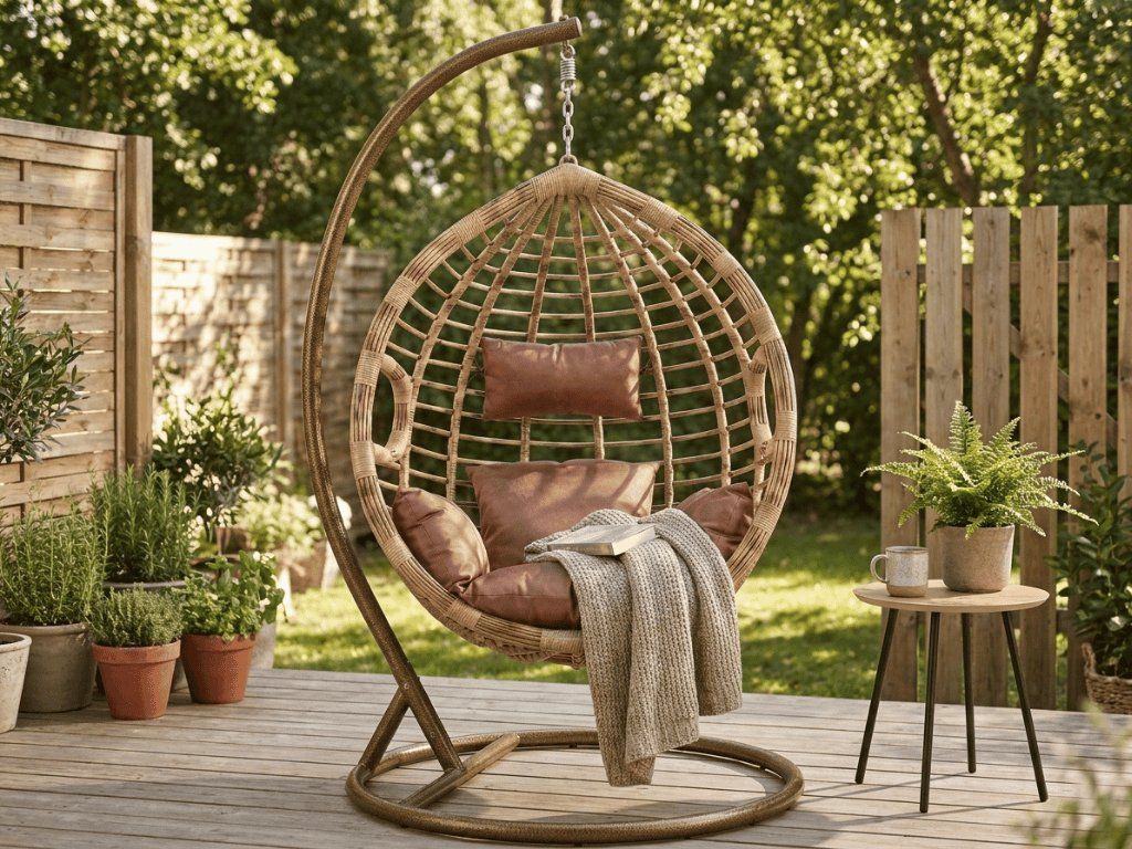 Uživajte u mirnim trenucima u vlastitom kutku spokoja. Viseća stolica nije samo mjesto za sjedenje, već i način da usporite i napunite energijom. Lagano ljuljanje pomaže opustiti tijelo i um, bilo da se opuštate vani u vrtu ili unutra, čitajući omiljenu knjigu. Zahvaljujući izdržljivim materijalima i elegantnom dizajnu, postat će stilskim dodatkom svakog prostora – i vašim novim omiljenim mjestom.